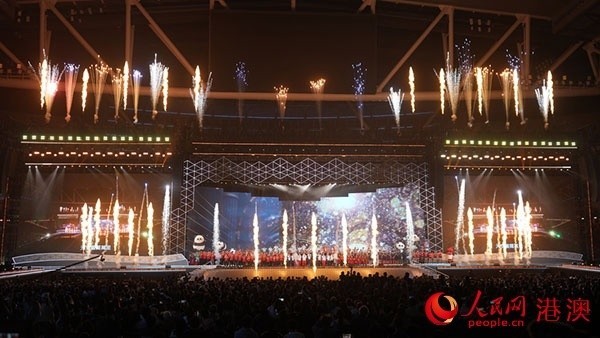 开幕典礼在全体大合唱和烟火表演中结束。人民网 严小晶摄